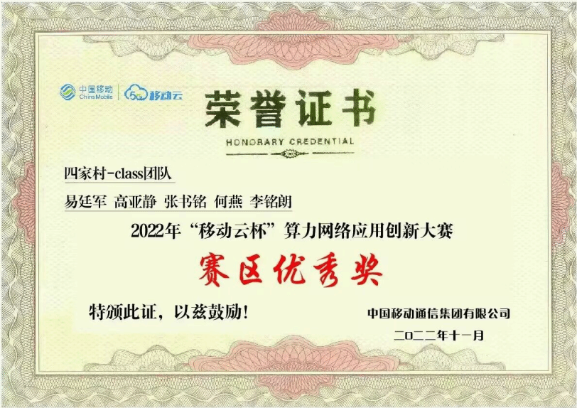 2022年“移动云杯”算力网络应用创新大赛赛区优秀奖(省第九名)