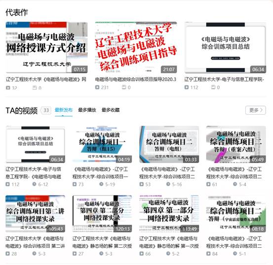 在2020年春季学期网络授课阶段通过录制视频、直播等方式进行《电磁场与电磁波》课程的授课与课程实践环节的指导,取得了良好的效果,普遍受到学生的认可。