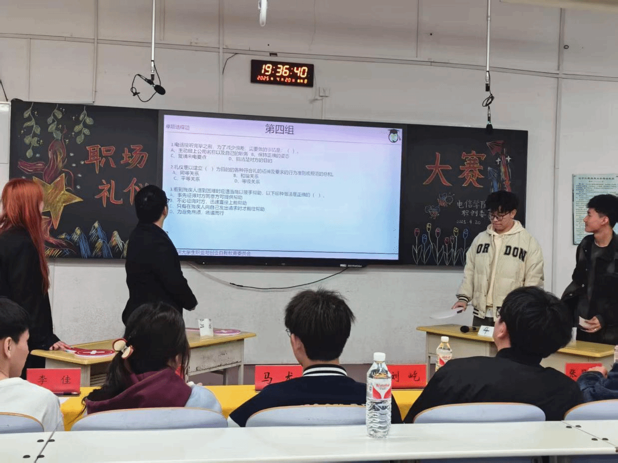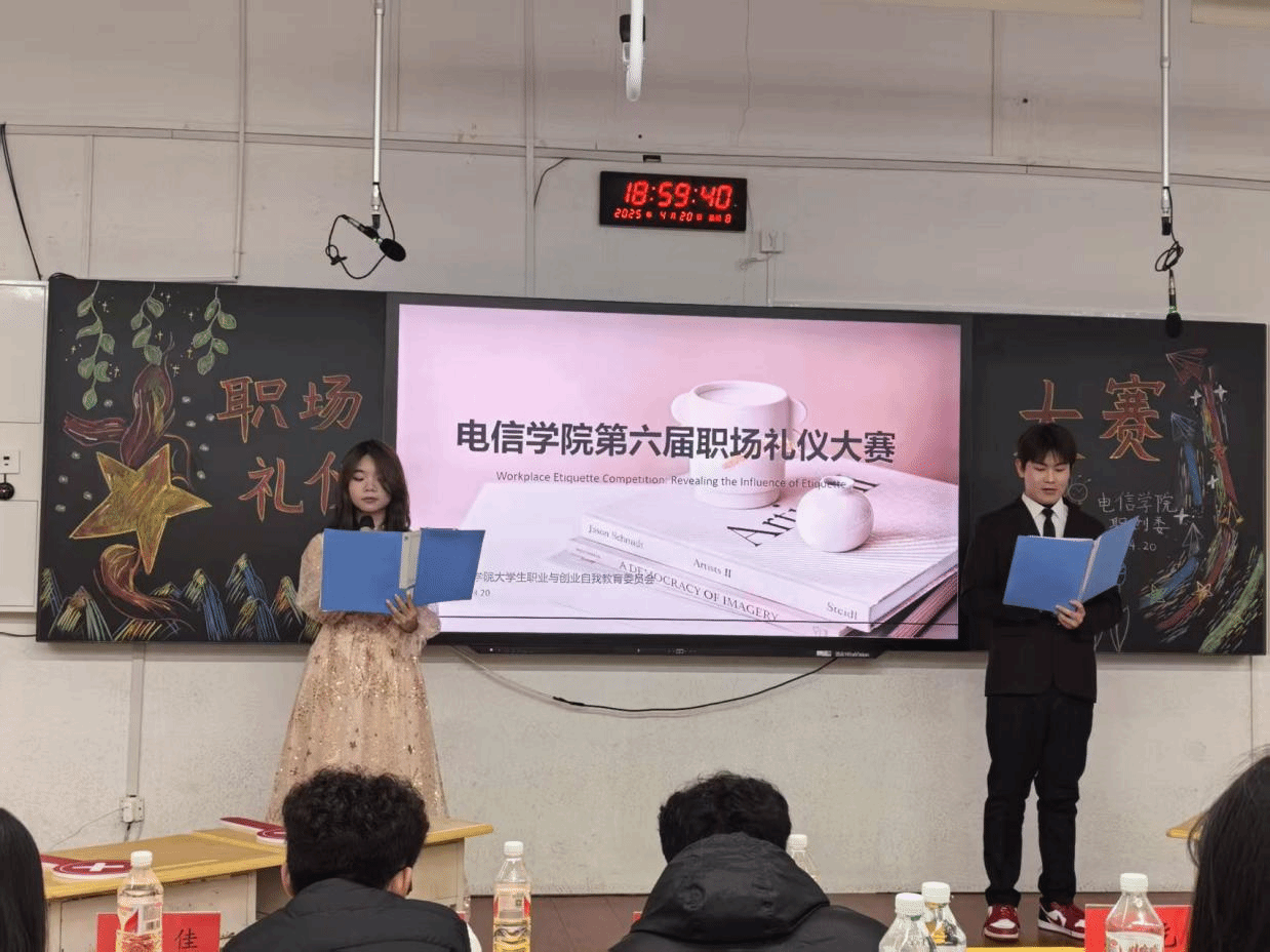 2025年4月20日晚6点30分,独播库 在尔雅103教室举行职场礼仪大赛。此次大赛面向学院4个专业的学生,旨在全方位提升同学们的职场礼仪水平,为未来的职业发展奠定基础。本次大赛的一大亮点是紧密结合电信专业特色,让比赛内容更具针对性。大赛邀请了学校各组织的主席联合评审,他们从专业和实践的角度进行评判,使得比赛结果更具权威性,也让整个比赛过程更加贴近职场实际。