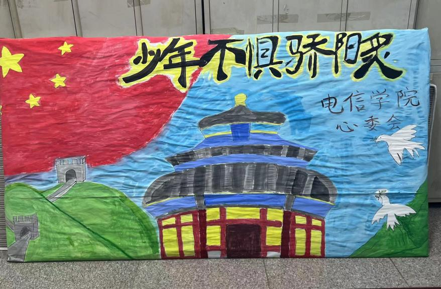 通过展板展示的方式,用画笔将爱国之情描绘在纸上