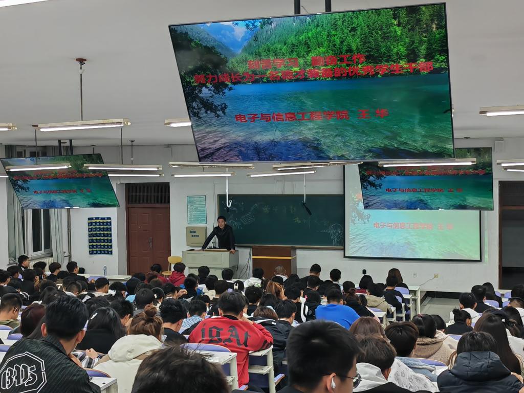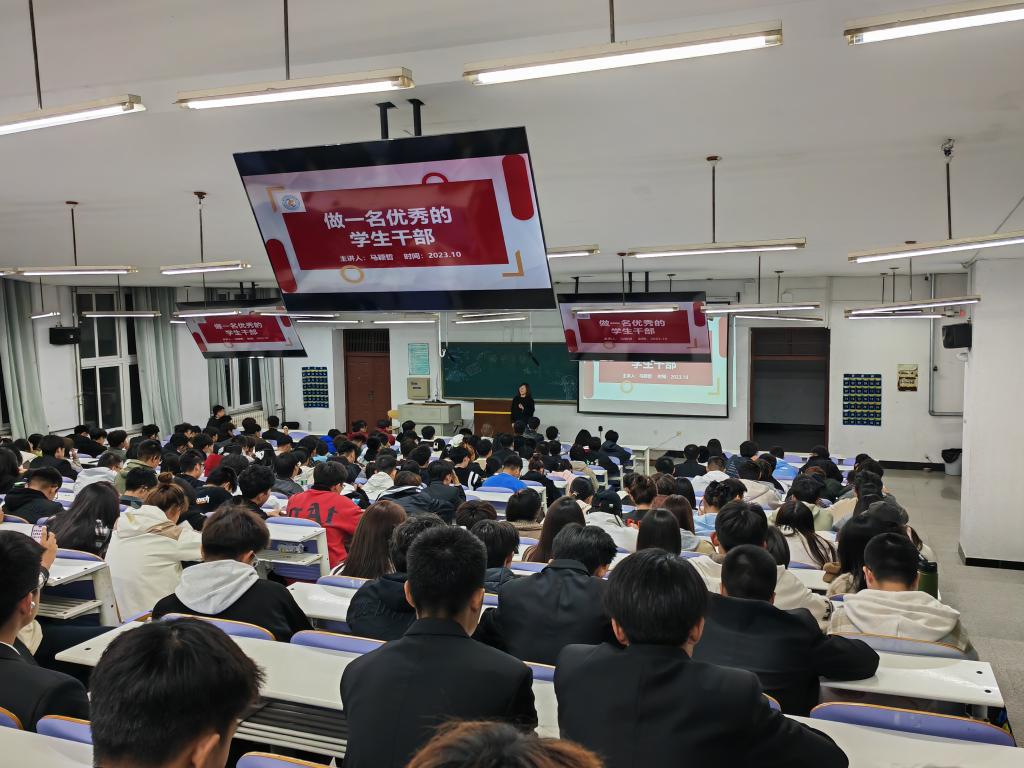为加强新生学生干部队伍建设,提升学生干部的综合素质,提高学生自我管理、自我教育、自我服务的能力。独播库 于10月20日晚六点半在尔雅楼101举办独播库 大一新生学生干部专题培训会,独播库 党委副书记王华、学工部主任马颖哲为学生干部做培训,会议由学院团委书记王兆全主持,各班主要学生干部、各个组织成员共计300余人参加本次培训。