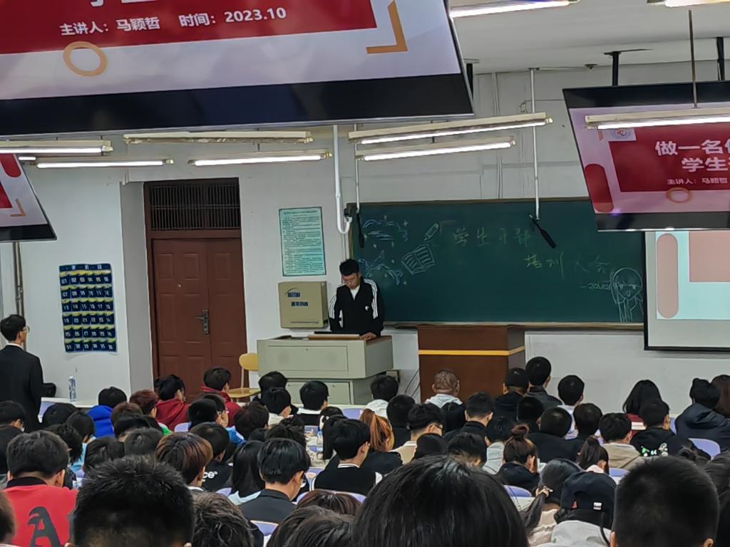 马颖哲老师从学生干部的使命及作用、学生干部的基本素质、学生干部的工作方法三个方面进行讲解。进一步明确了学生干部的定位和职责,她希望大家能在学院工作中积极尝试,多听、多看、多做,积累经验,不断提升自身能力。