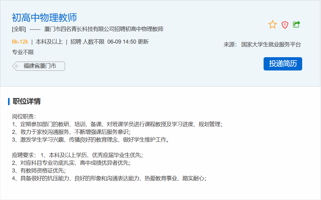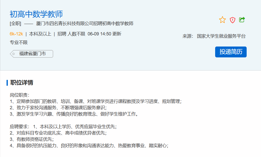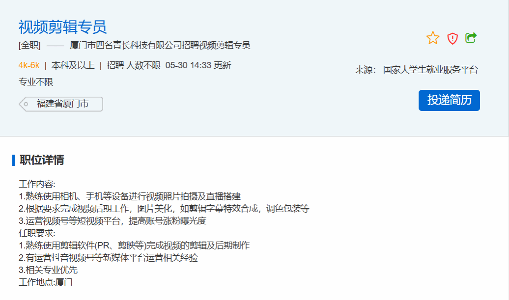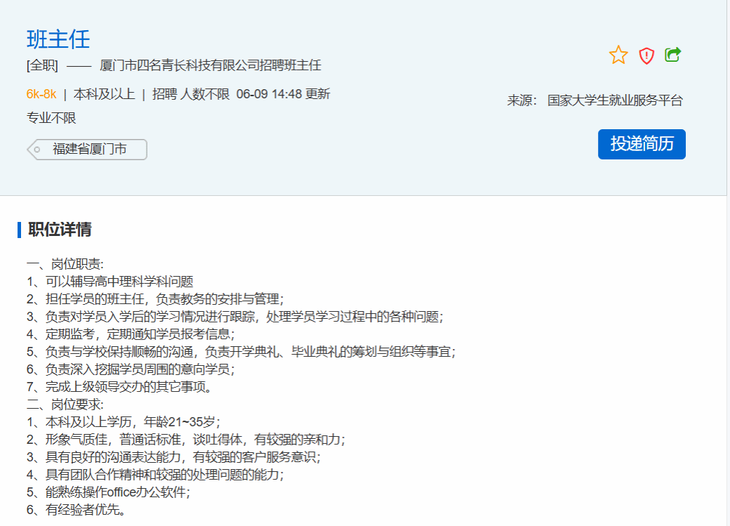 厦门市四名青长科技有限公司线上招聘 | 本科以上,专业不限