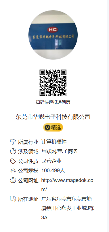 东莞市华聪电子科技有限公司线上招聘 | 专科及以上学历