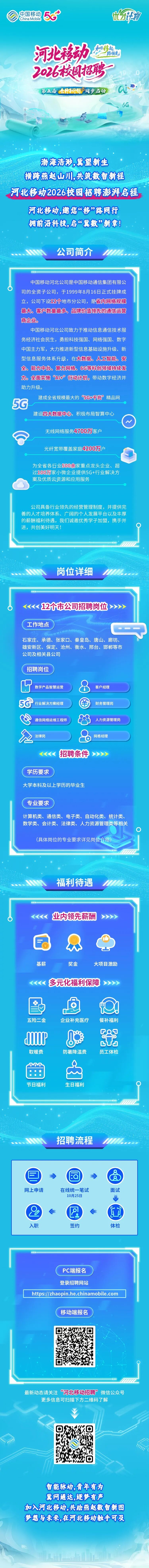 河北移动2026秋季校园招聘正式启动! | 本科及以上学历