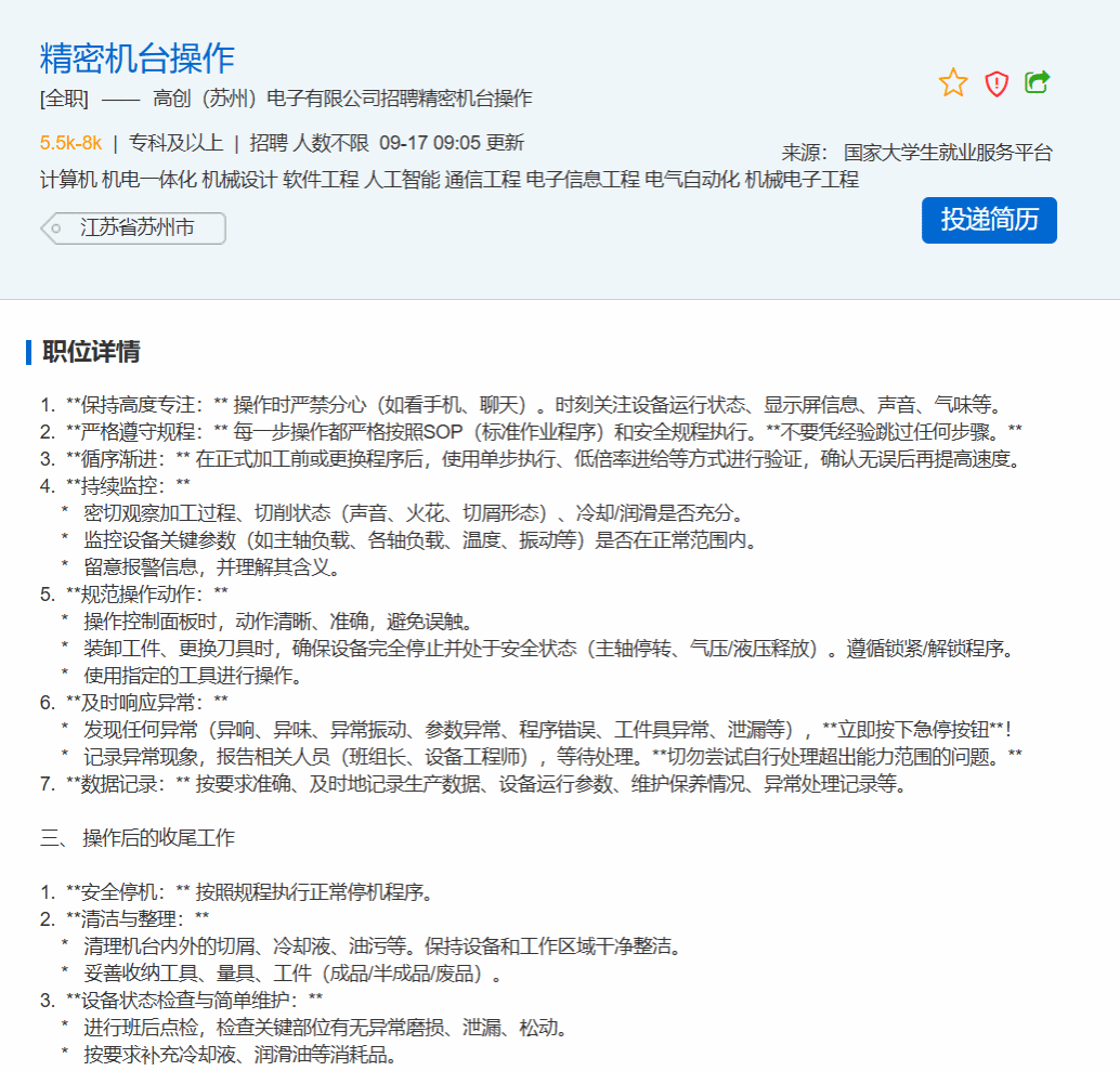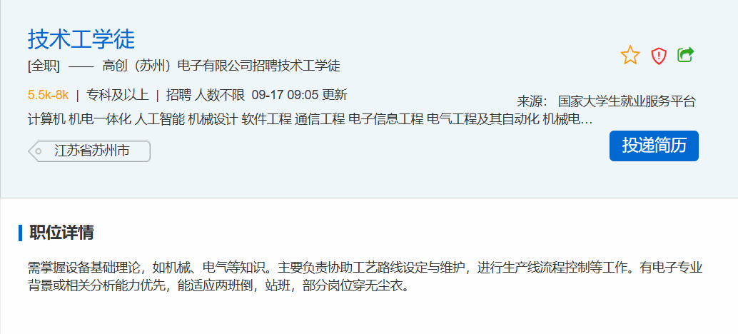 高创(苏州)电子有限公司线上招聘 | 专科及以上学历