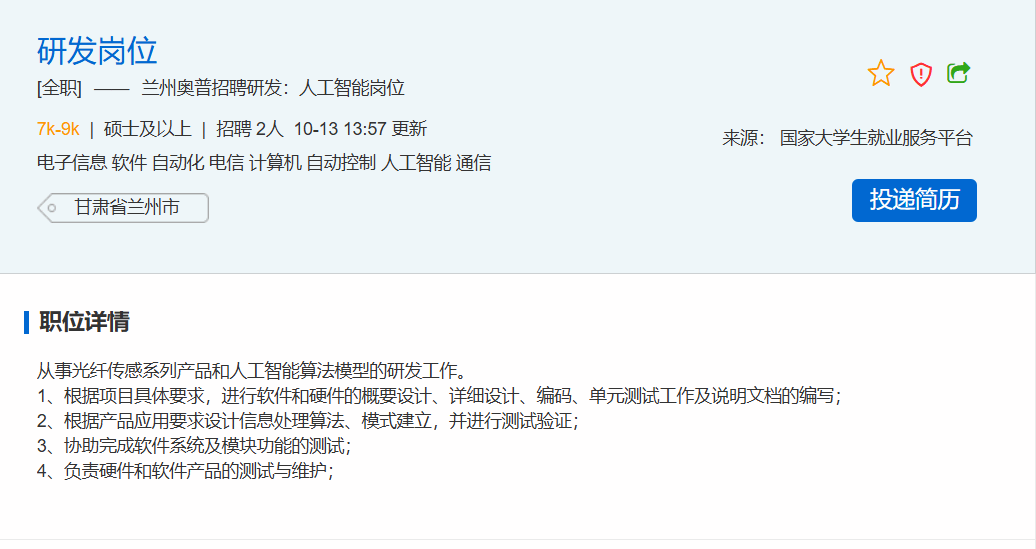 兰州奥普信息技术有限公司线上招聘 | 硕士及以上学历