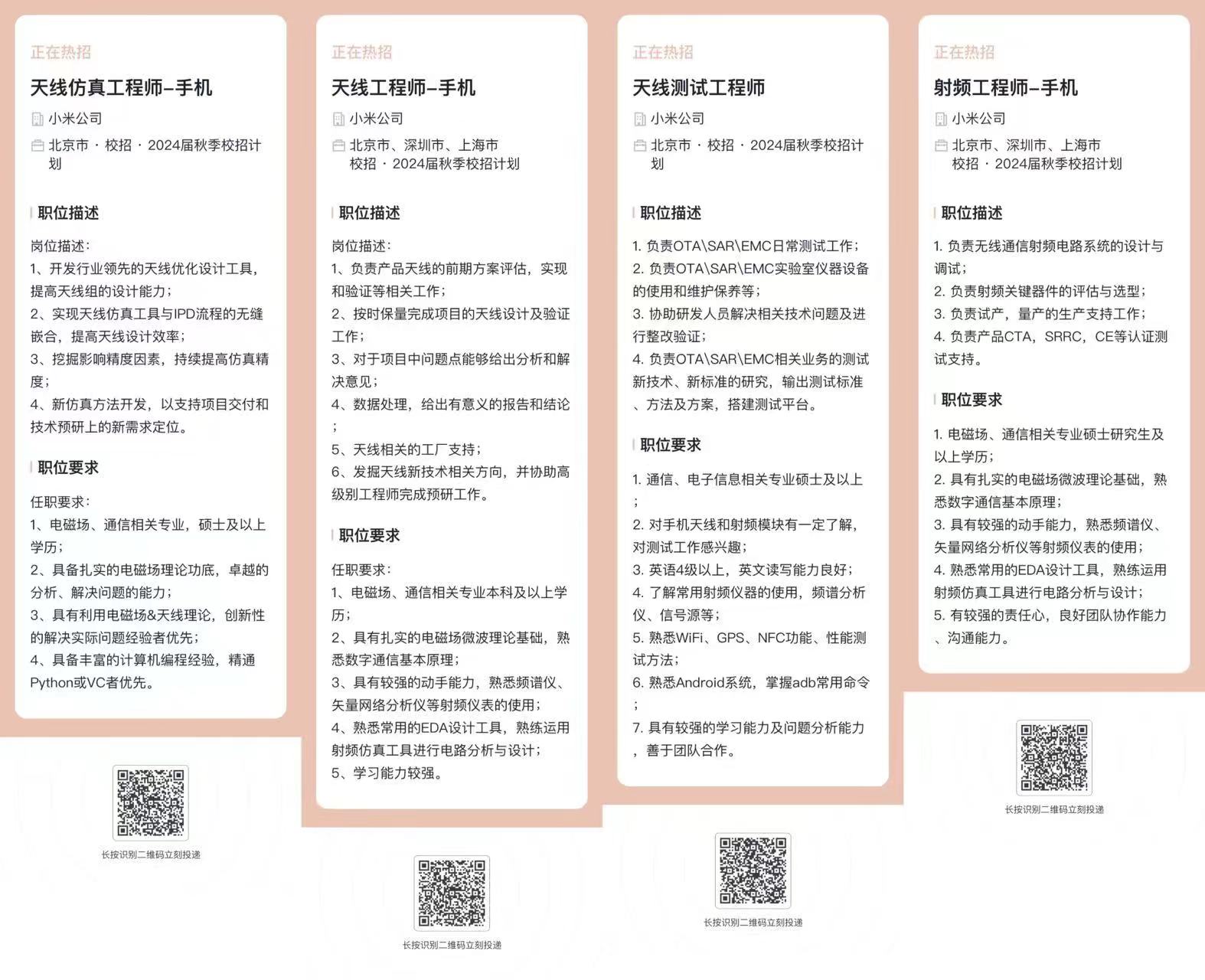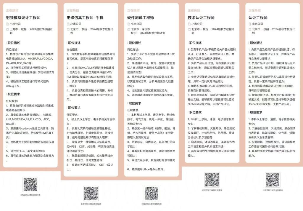 小米秋季校招,可以扫码投递