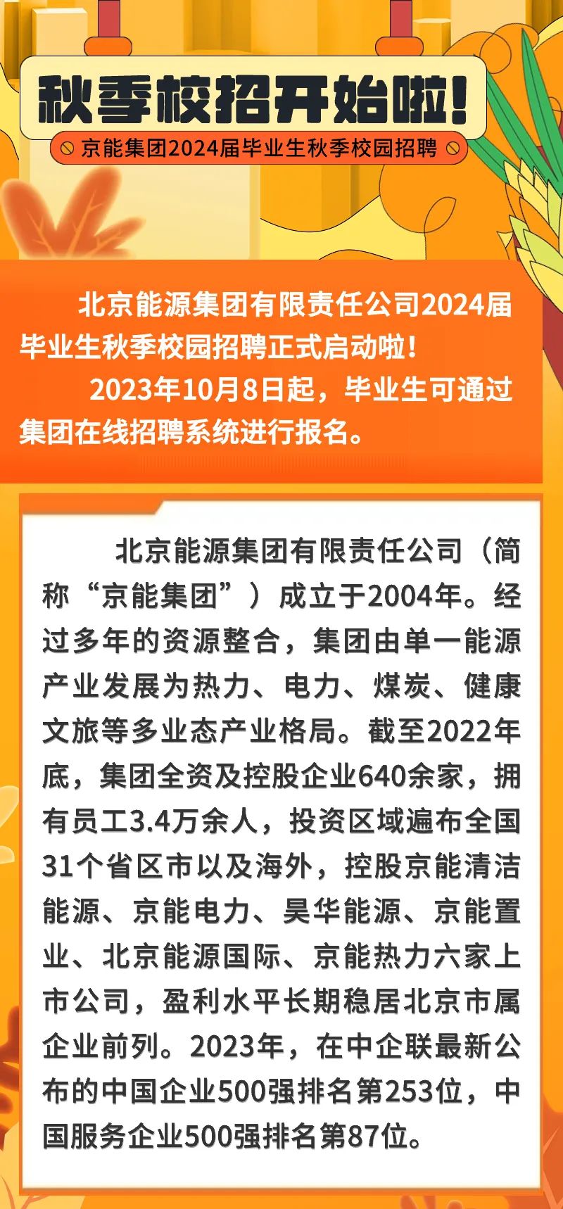 京能集团2024届秋季校园招聘正式启动!| 招聘大学本科及以上学历