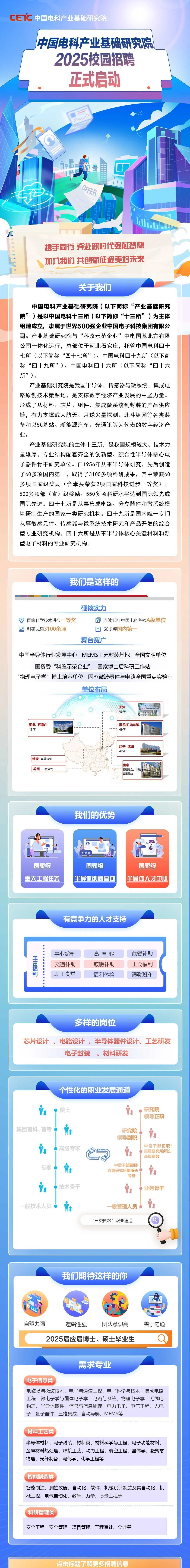 中国电科产业基础研究院2025届秋季校园招聘正式启动