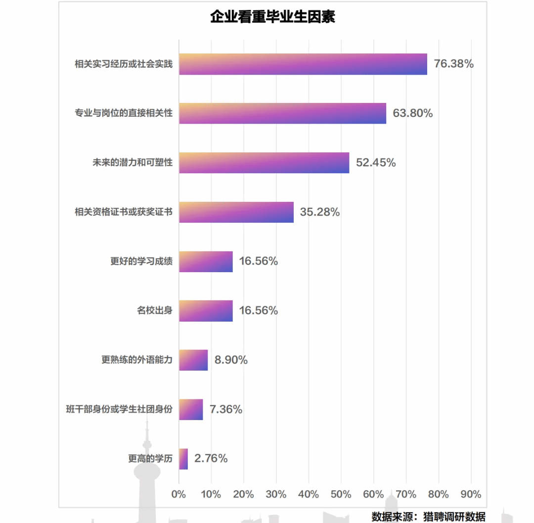 相比于其他的因素,企业最看重的还是毕业生的实习经历