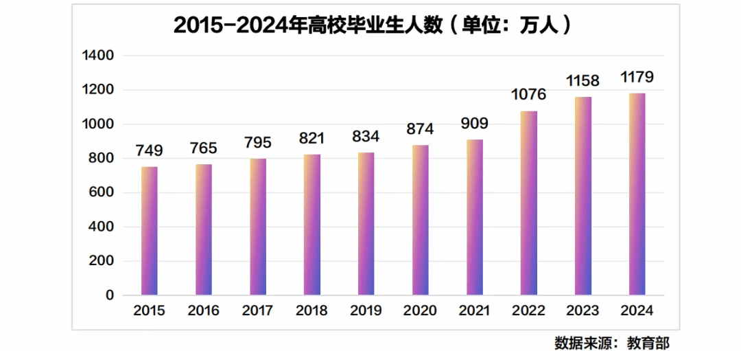 2025年预计毕业大学生1186万人,就业竞争加剧,用人单位招聘要求越来越多,标准越来越高。
