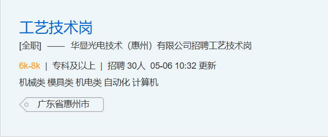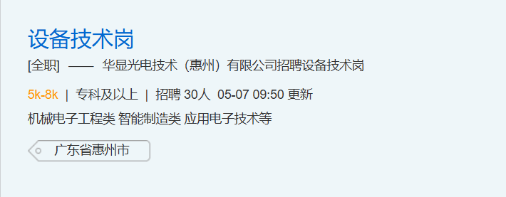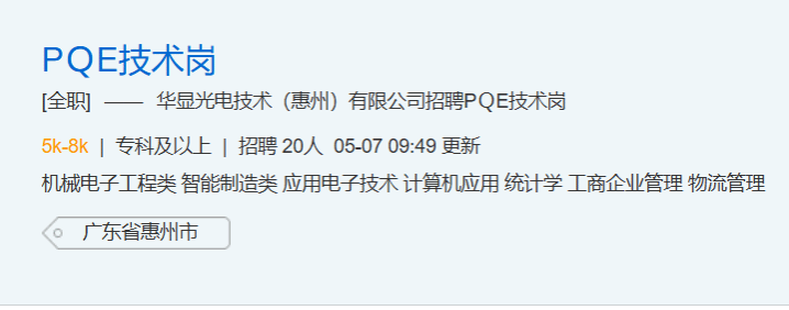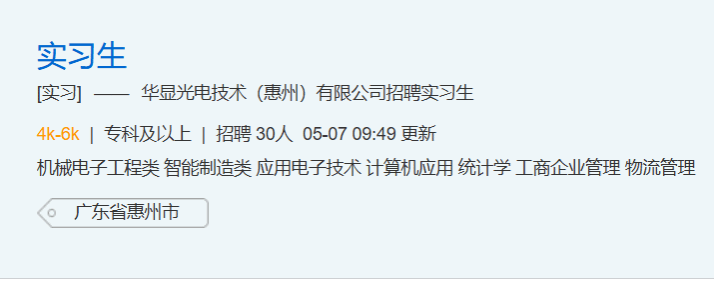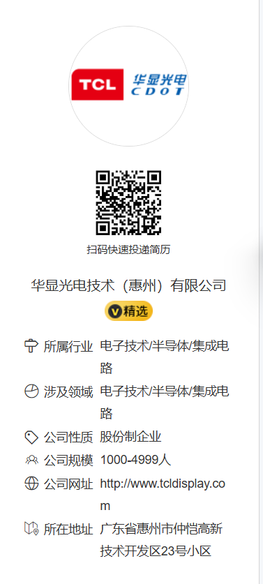 华显光电技术(惠州)有限公司招聘 | 专科及以上学历
