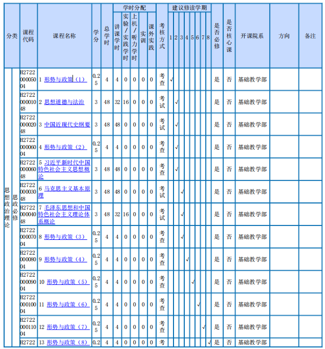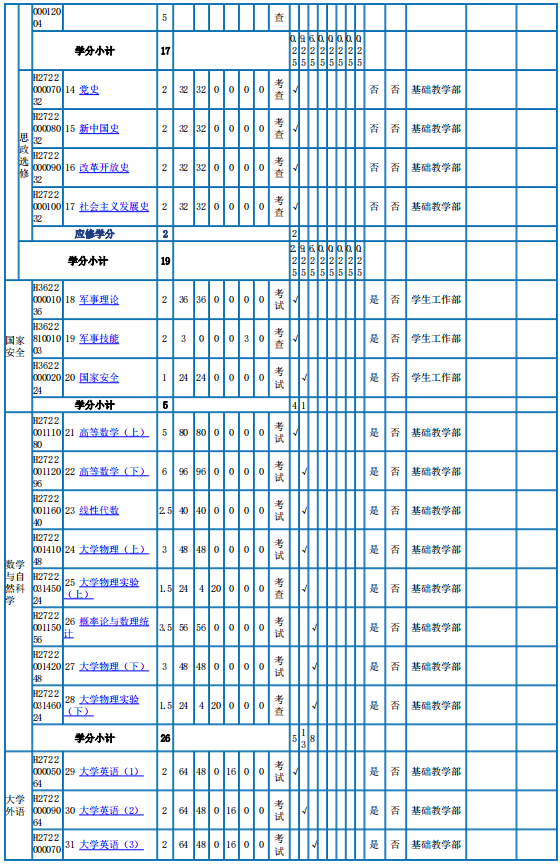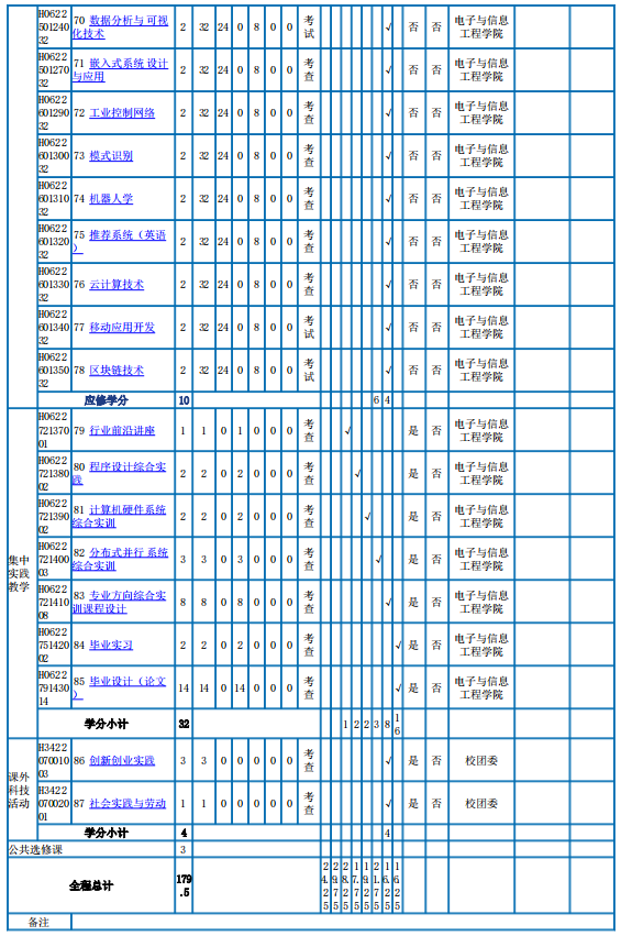 程序设计综合实训、计算机硬件系统设计综合实训、分布式并行处理系统设计综合实训、专业方向综合实训、毕业实习、毕业设计(论文)。