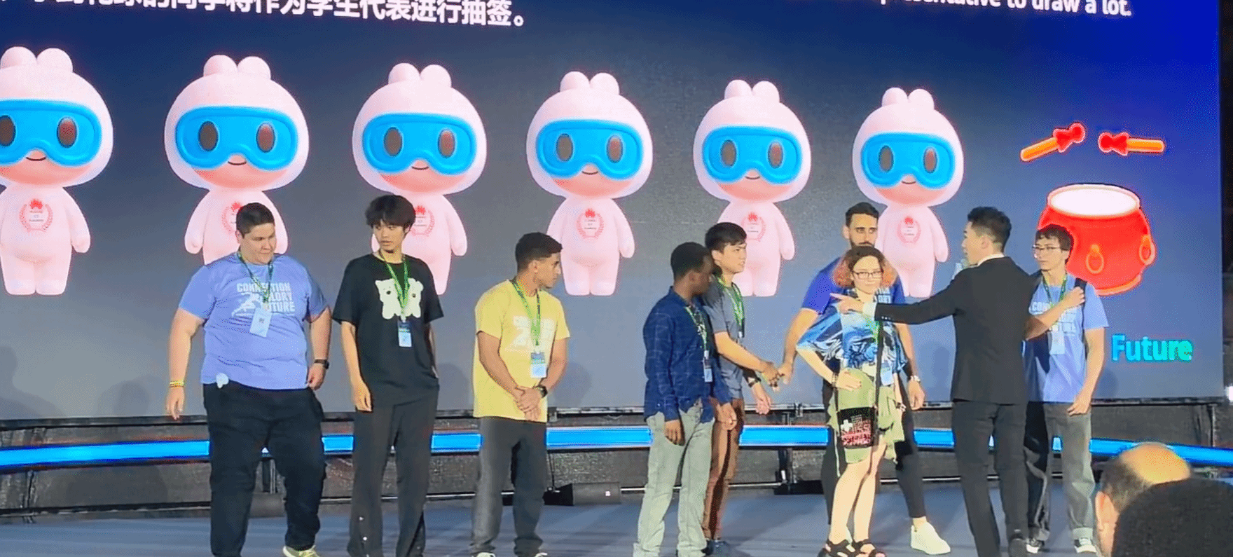 图2 沈俊涛(左二)在ICT全球总决赛开幕式上受邀参与学生代表抽签相关活动