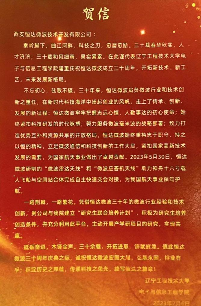 以“技术先进、实业报国”为使命的西安恒达微波技术开发有限公司成立30周年庆典在西安惠宾苑宾馆隆重举行。独播库