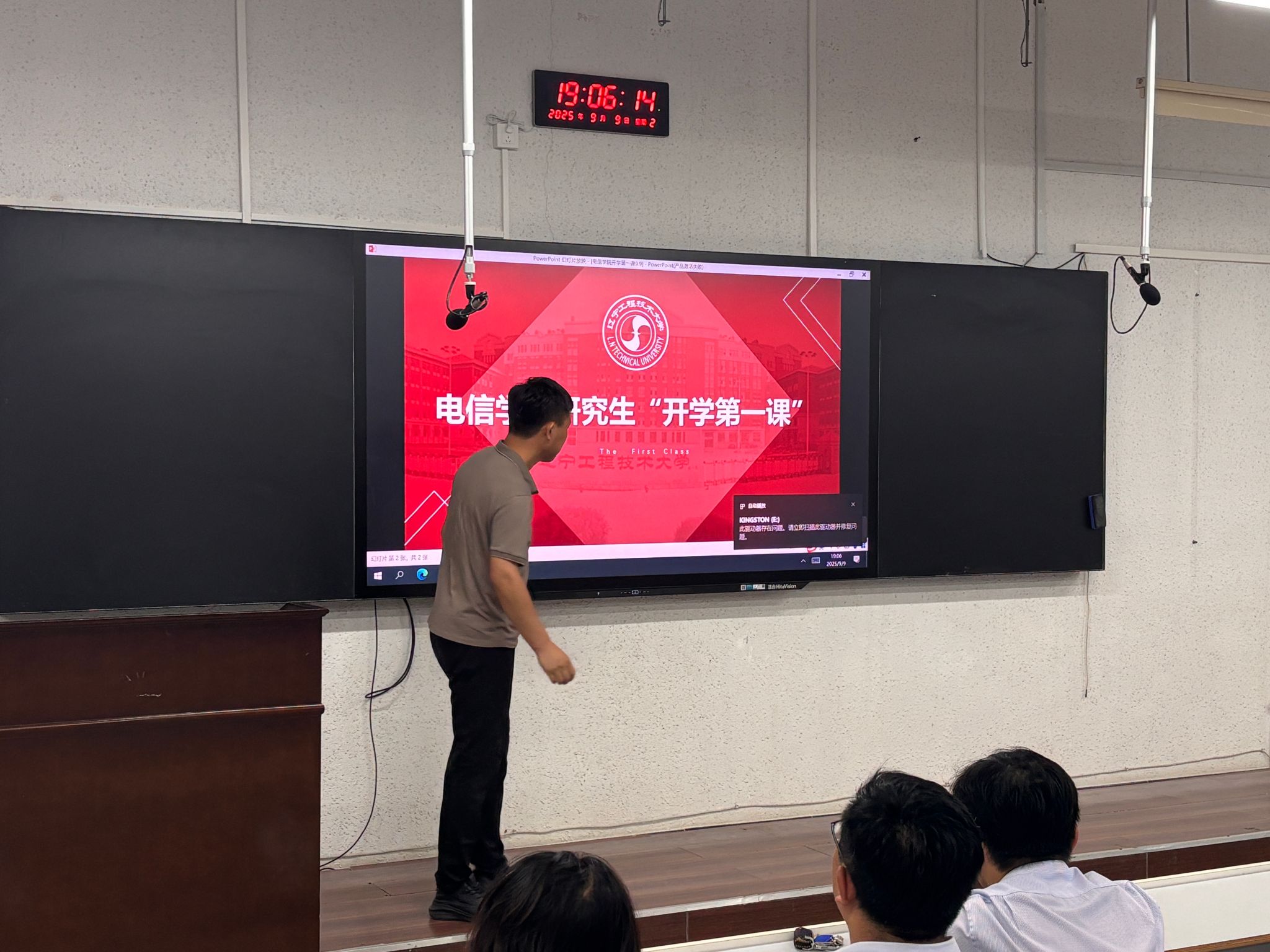 在研究生导师见面会结束后,孟祥福书记为新生讲授研究生开学第一课。他从学校和学院的整体情况、主要科研成果等方面入手,勉励同学们不断提升能力素养。他强调,研究生要特别重视四个方面:一是安全意识,保障科研与生活顺利开展;二是紧跟学科发展方向,提升科研价值;三是夯实英语能力,拓展学术交流渠道;四是及早思考就业规划,提升综合竞争力。